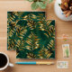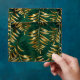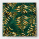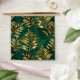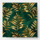 Seamless pattern of gold, jewelry, shiny fern branches and leaves on green, woodland, textured background. Golden fern.
