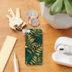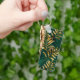 Seamless pattern of gold, jewelry, shiny fern branches and leaves on green, woodland, textured background. Golden fern.