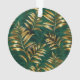Seamless pattern of gold, jewelry, shiny fern branches and leaves on green, woodland, textured background. Golden fern.