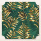Seamless pattern of gold, jewelry, shiny fern branches and leaves on green, woodland, textured background. Golden fern.
