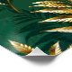 Seamless pattern of gold, jewelry, shiny fern branches and leaves on green, woodland, textured background. Golden fern.