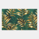 Seamless pattern of gold, jewelry, shiny fern branches and leaves on green, woodland, textured background. Golden fern.