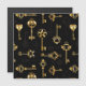 Seamless pattern of antique, gold and silhouette keys on black background.