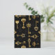 Seamless pattern of antique, gold and silhouette keys on black background.