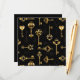 Seamless pattern of antique, gold and silhouette keys on black background.