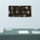 Seamless pattern of antique, gold and silhouette keys on black background.