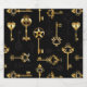 Seamless pattern of antique, gold and silhouette keys on black background.