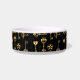 This is a heavy, durable bowl decorated with Tibbies of many colors, the perfect size for hungry/thirsty Tibs. The design is interesting and printing clear.