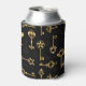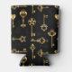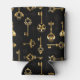 Seamless pattern of antique, gold and silhouette keys on black background.