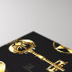 Seamless pattern of antique, gold and silhouette keys on black background.