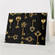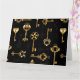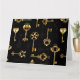 Seamless pattern of antique, gold and silhouette keys on black background.