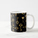 Seamless pattern of antique, gold and silhouette keys on black background.