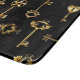 Seamless pattern of antique, gold and silhouette keys on black background.
