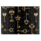 Seamless pattern of antique, gold and silhouette keys on black background.