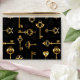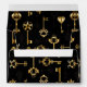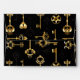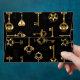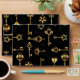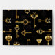 Seamless pattern of antique, gold and silhouette keys on black background.