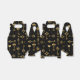 Seamless pattern of antique, gold and silhouette keys on black background.