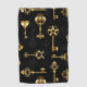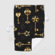 Seamless pattern of antique, gold and silhouette keys on black background.