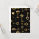 Seamless pattern of antique, gold and silhouette keys on black background.
