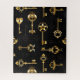 Seamless pattern of antique, gold and silhouette keys on black background.