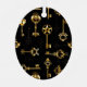 Seamless pattern of antique, gold and silhouette keys on black background.