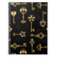Seamless pattern of antique, gold and silhouette keys on black background.