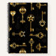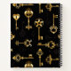 Seamless pattern of antique, gold and silhouette keys on black background.