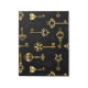 Seamless pattern of antique, gold and silhouette keys on black background.