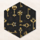 Seamless pattern of antique, gold and silhouette keys on black background.