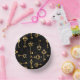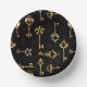 Seamless pattern of antique, gold and silhouette keys on black background.