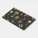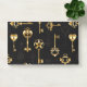 Seamless pattern of antique, gold and silhouette keys on black background.