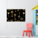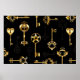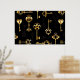 Seamless pattern of antique, gold and silhouette keys on black background.