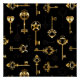 Seamless pattern of antique, gold and silhouette keys on black background.