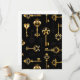 Seamless pattern of antique, gold and silhouette keys on black background.