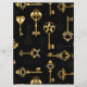 Seamless pattern of antique, gold and silhouette keys on black background.