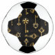 Seamless pattern of antique, gold and silhouette keys on black background.
