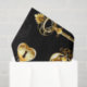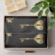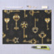Seamless pattern of antique, gold and silhouette keys on black background.