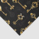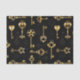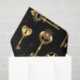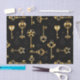 Seamless pattern of antique, gold and silhouette keys on black background.