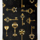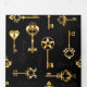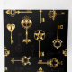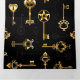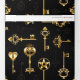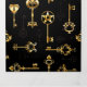 Seamless pattern of antique, gold and silhouette keys on black background.
