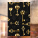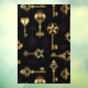 Seamless pattern of antique, gold and silhouette keys on black background.