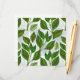 Seamless pattern of green patterned tea leaves and sprouts on a light background. Tea design.
