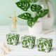 Seamless pattern of green patterned tea leaves and sprouts on a light background. Tea design.