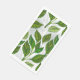 Seamless pattern of green patterned tea leaves and sprouts on a light background. Tea design.