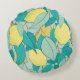 seamless pattern with hand drawn lemon garden round pillow