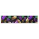 Seamless pattern of bright purple, green, and gold feathers on black Mardi Gras background. Design for the Mardi Gras holiday.