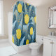 Design with seamless pattern yellow tulips on dark blue background. Bright yellow tulip. Juicy spring gradient. vintage illustration.