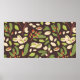 Seamless pistachio pattern with nuts, shells, branches and leaves. Endless texture with realistic pistaches on black background. Hand-drawn colored vintage illustration