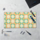 Seamless retro pattern with rounded squares in peach, teal, and cream hues, outlined in orange. Mid-century modern style, conveying a vintage, playful tone.