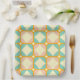 Seamless retro pattern with rounded squares in peach, teal, and cream hues, outlined in orange. Mid-century modern style, conveying a vintage, playful tone.