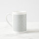 This mug is imprinted with a Bach Solos Suite for Cello. It was purchased as a thank you gift for a professional cellist friend who often performs this work. The cup is made of a high-grade ceramic and is fairly light. The walls are not too thick and it is a small to medium size. It's well finished, has a high-gloss glaze, and looks very elegant. The Bach Solo Suite score on the example I received was clear and had high contrast. Even though the staffs were small, the music was easy to read. The cellist who received this cup immediately knew what the music was as soon as she set eyes on it.