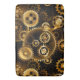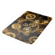 Seamless, metal, brass, gold gears on rusty dark background. Steampunk style.